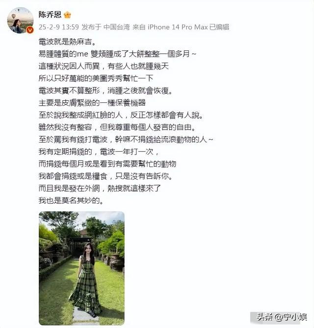 陈乔恩公开承认因小项目恢复期脸肿一个多月,照样被群嘲“馒化”。